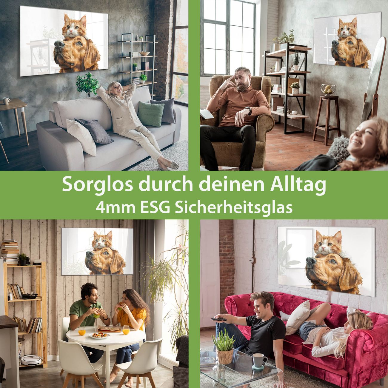 - Material: 4mm Sicherheitsglas mit Metallrückwand