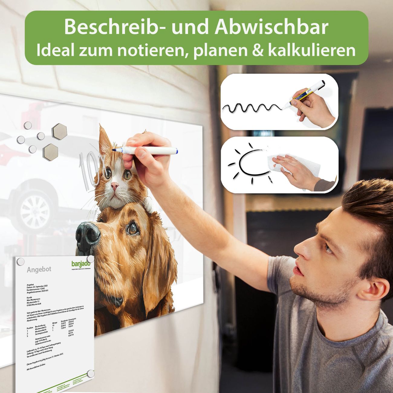 Bitte beachten Sie, dass ausschliessliche spezielle Magnete an der Glastafel haften. Wir empfehlen banjado Neodym Magnete, diese sind durch uns auf Wirksamkeit geprüft.