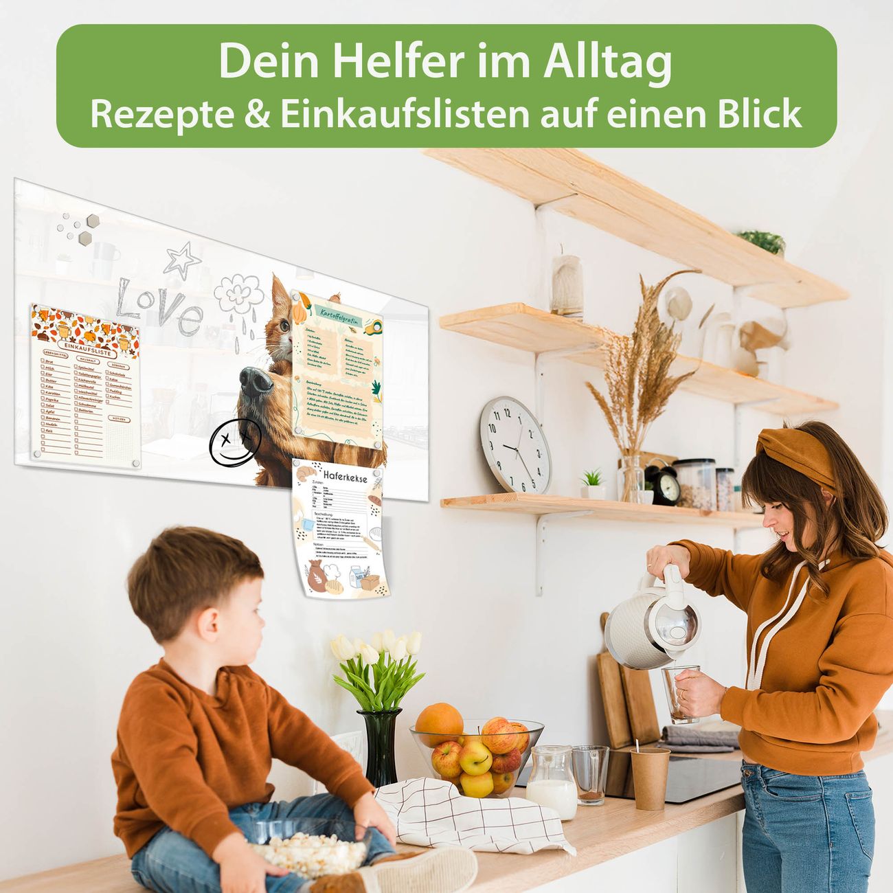 Ein Stück Design, das Ihren Alltag organisiert. Schreiben, heften, inspirieren - alles an einem Ort. Qualität, die man spürt. Montage leicht gemacht. Handwerk mit Herz - veredelt in Sachsen. Einzigartiges Design mit Motiv Motiv Freundschaft in Fell Beschreibbare Glasoberfläche, leicht zu reinigen Starke Magnetkraft durch Stahlrückwand Inklusive 4 Neodym-Magneten Flexible Montageoptionen Handveredelt in Sachsen - Qualität, die bleibt