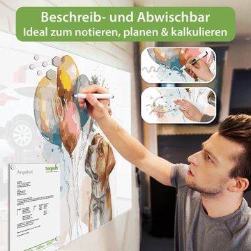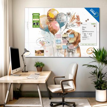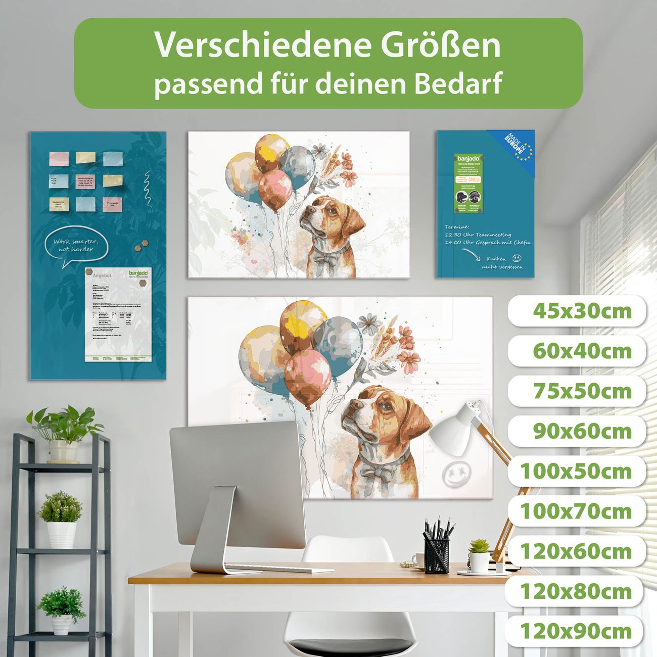 Ein Stück Design, das Ihren Alltag organisiert. Schreiben, heften, inspirieren - alles an einem Ort. Qualität, die man spürt. Montage leicht gemacht. Handwerk mit Herz - veredelt in Sachsen. Einzigartiges Design mit Motiv Motiv Fröhliche Hundeparade Beschreibbare Glasoberfläche, leicht zu reinigen Starke Magnetkraft durch Stahlrückwand Inklusive 4 Neodym-Magneten Flexible Montageoptionen Handveredelt in Sachsen - Qualität, die bleibt