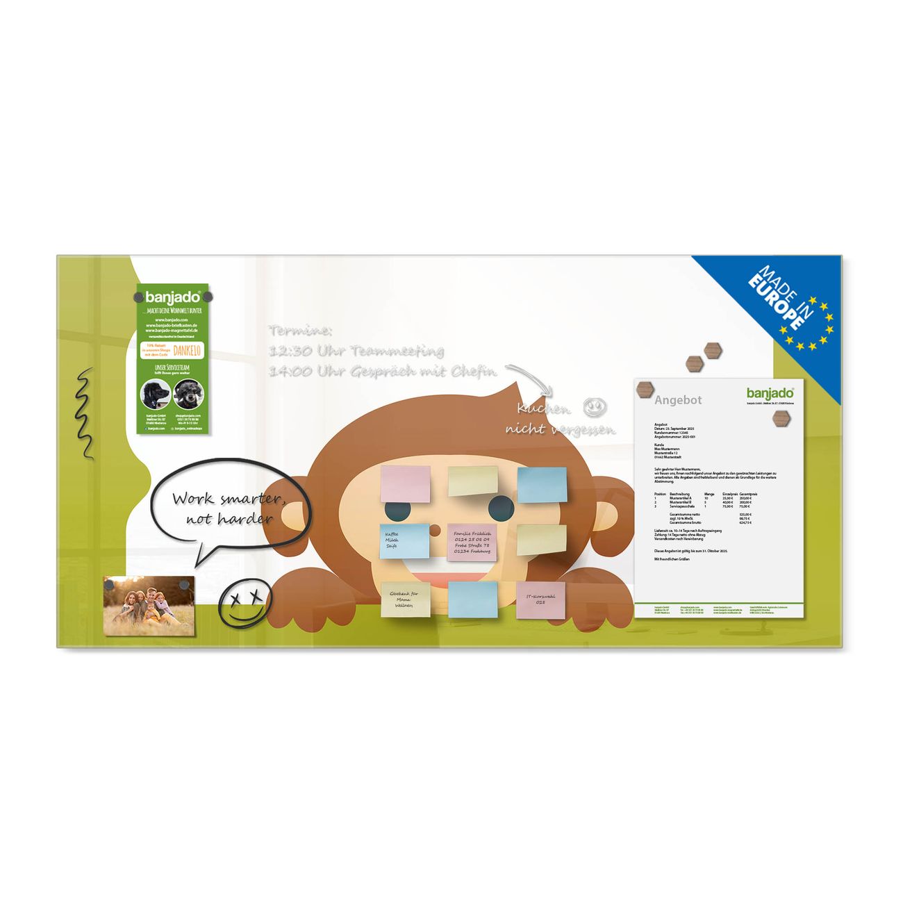 Glas Magnettafel im Querformat Motiv Fröhlicher Affe