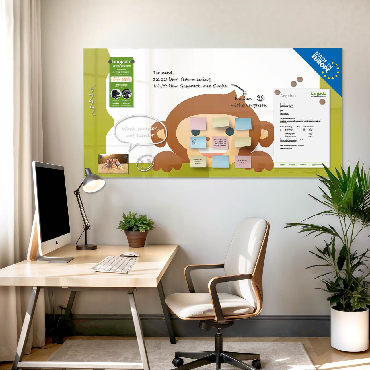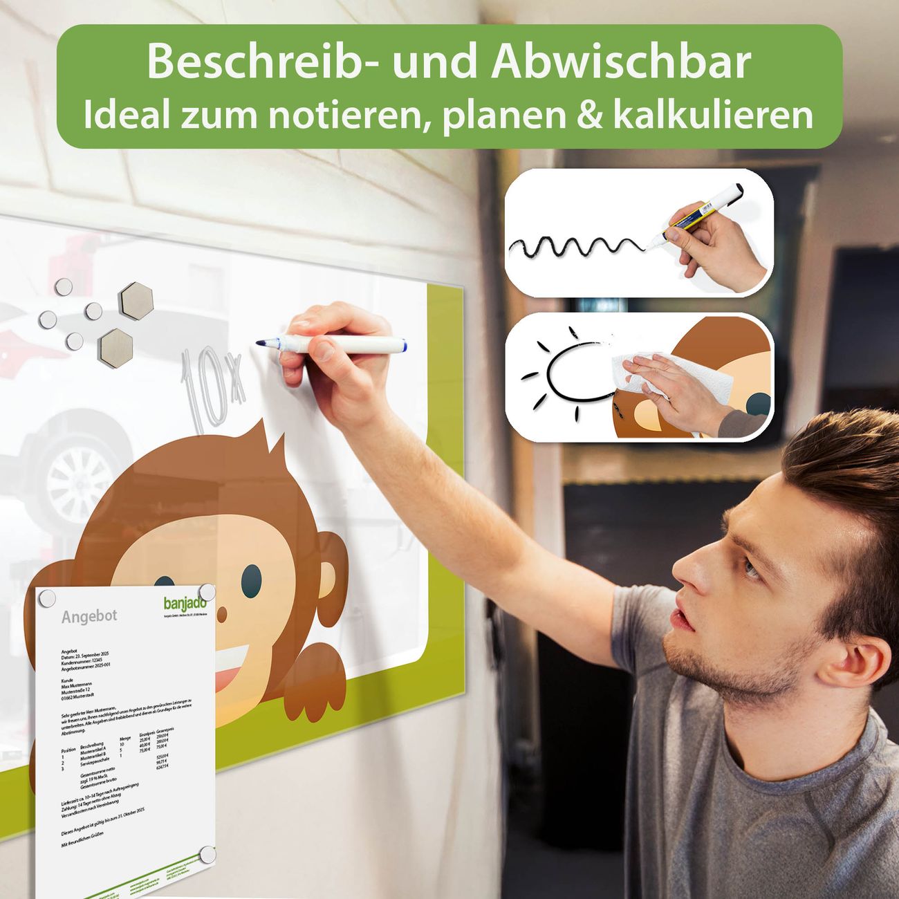 Die banjado Glas Magnettafel mit dem Motiv Motiv Fröhlicher Affe verbindet Funktionalität mit Stil. Sie ersetzt das Zettelchaos durch klare Strukturen und bringt dabei eine warme, natürliche Atmosphäre in Ihr Zuhause. Ob im Büro, in der Küche oder im Eingangsbereich - dieses Design-Board zieht Blicke an und sorgt für Ordnung mit Charakter.
