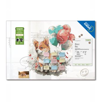 Die banjado Glas Magnettafel mit dem Motiv Motiv Fröhlicher Corgi mit Ballons verbindet Funktionalität mit Stil. Sie ersetzt das Zettelchaos durch klare Strukturen und bringt dabei eine warme, natürliche Atmosphäre in Ihr Zuhause. Ob im Büro, in der Küche oder im Eingangsbereich - dieses Design-Board zieht Blicke an und sorgt für Ordnung mit Charakter.