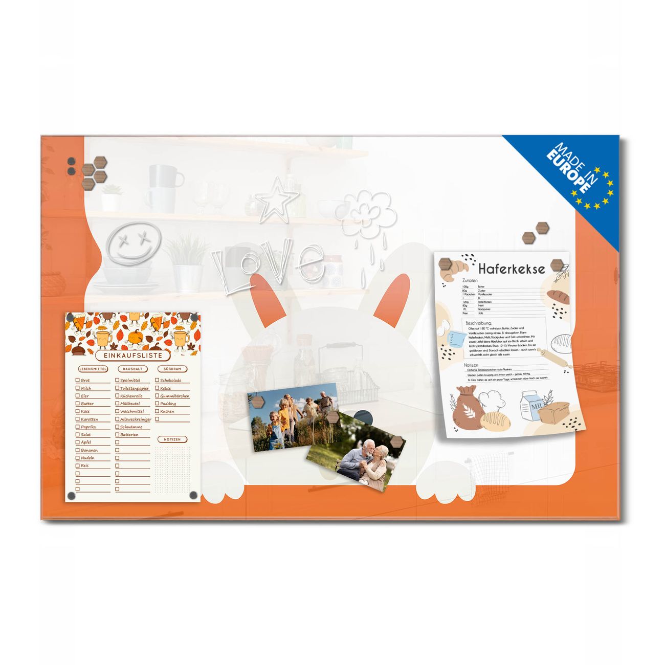 Ein Stück Design, das Ihren Alltag organisiert. Schreiben, heften, inspirieren - alles an einem Ort. Qualität, die man spürt. Montage leicht gemacht. Handwerk mit Herz - veredelt in Sachsen. Einzigartiges Design mit Motiv Motiv Fröhlicher Ostern-Hase Beschreibbare Glasoberfläche, leicht zu reinigen Starke Magnetkraft durch Stahlrückwand Inklusive 4 Neodym-Magneten Flexible Montageoptionen Handveredelt in Sachsen - Qualität, die bleibt