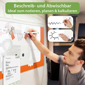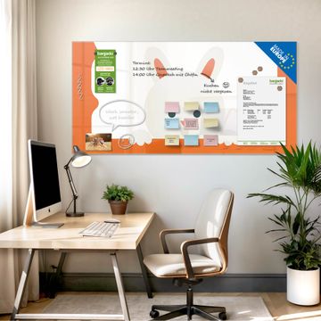 Auf der glatten Glasoberfläche lassen sich Termine, Rezepte oder Notizen ganz einfach mit Kreidestiften festhalten und rückstandslos entfernen. Starke Neodym-Magnete halten Ihre wichtigsten Erinnerungen sicher an Ort und Stelle. So entsteht Ihre ganz persönliche Ideenwand - jeden Tag neu.