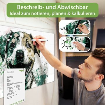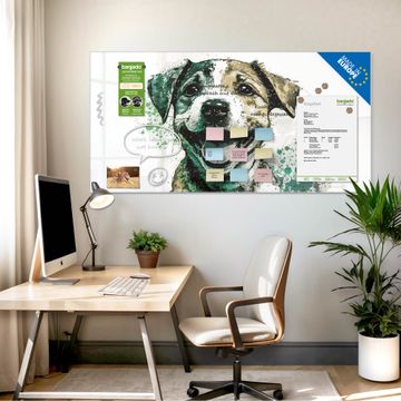 Die banjado Glas Magnettafel mit dem Motiv Motiv Fröhlicher Welpe verbindet Funktionalität mit Stil. Sie ersetzt das Zettelchaos durch klare Strukturen und bringt dabei eine warme, natürliche Atmosphäre in Ihr Zuhause. Ob im Büro, in der Küche oder im Eingangsbereich - dieses Design-Board zieht Blicke an und sorgt für Ordnung mit Charakter.