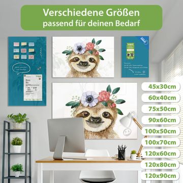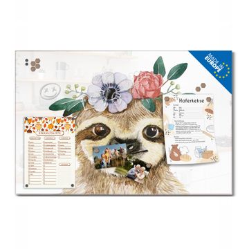 Die banjado Glas Magnettafel mit dem Motiv Motiv Fröhliches Faultier mit Blumenkranz verbindet Funktionalität mit Stil. Sie ersetzt das Zettelchaos durch klare Strukturen und bringt dabei eine warme, natürliche Atmosphäre in Ihr Zuhause. Ob im Büro, in der Küche oder im Eingangsbereich - dieses Design-Board zieht Blicke an und sorgt für Ordnung mit Charakter.
