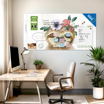 Auf der glatten Glasoberfläche lassen sich Termine, Rezepte oder Notizen ganz einfach mit Kreidestiften festhalten und rückstandslos entfernen. Starke Neodym-Magnete halten Ihre wichtigsten Erinnerungen sicher an Ort und Stelle. So entsteht Ihre ganz persönliche Ideenwand - jeden Tag neu.