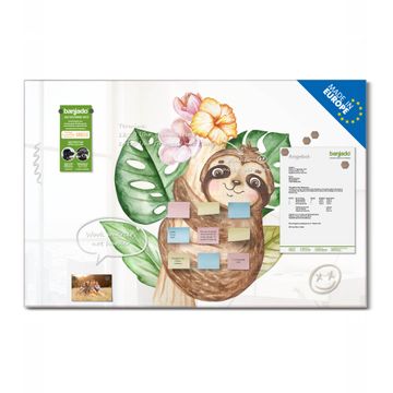 Die banjado Glas Magnettafel mit dem Motiv Motiv Fröhliches Faultier verbindet Funktionalität mit Stil. Sie ersetzt das Zettelchaos durch klare Strukturen und bringt dabei eine warme, natürliche Atmosphäre in Ihr Zuhause. Ob im Büro, in der Küche oder im Eingangsbereich - dieses Design-Board zieht Blicke an und sorgt für Ordnung mit Charakter.