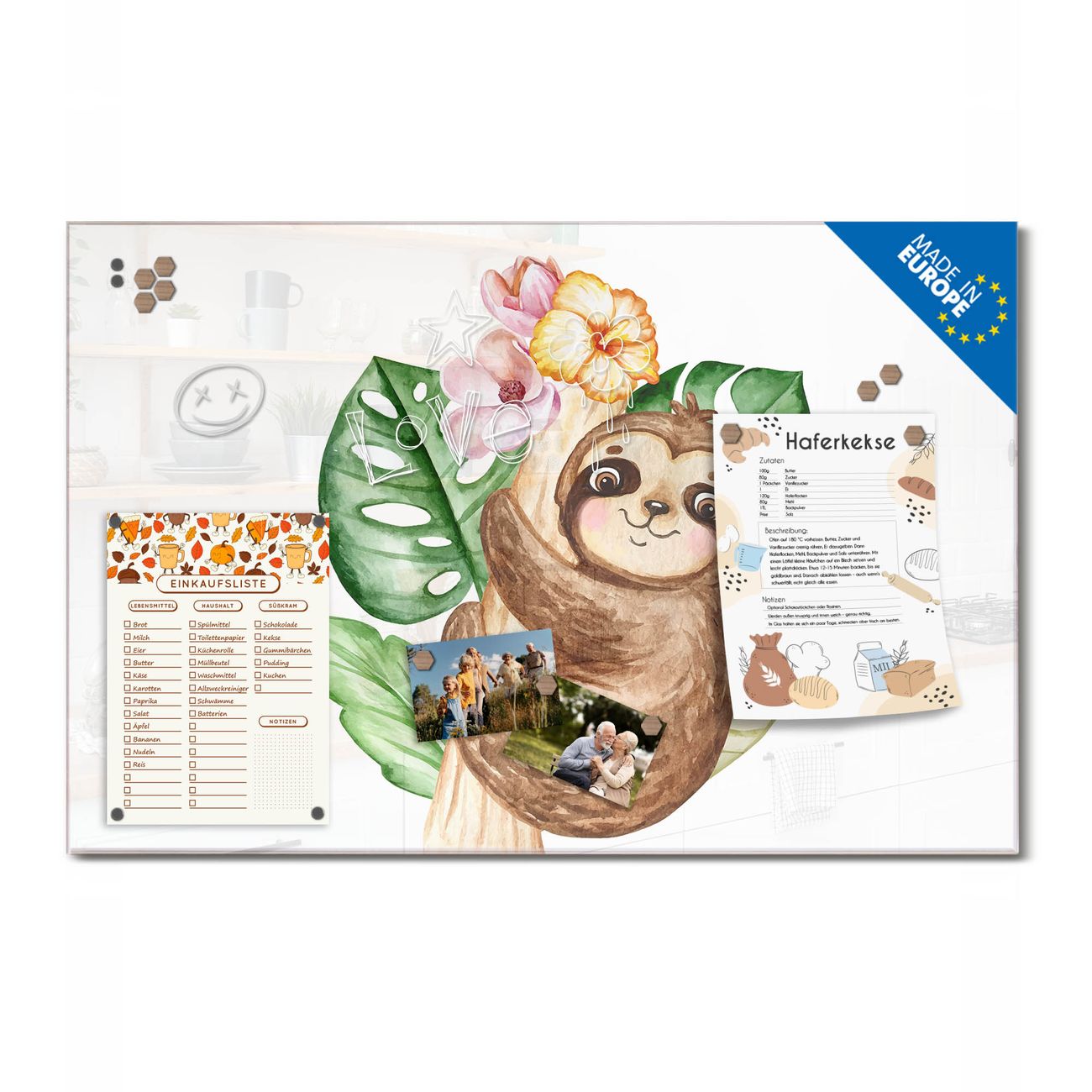 Glas Magnettafel im Querformat Motiv Fröhliches Faultier