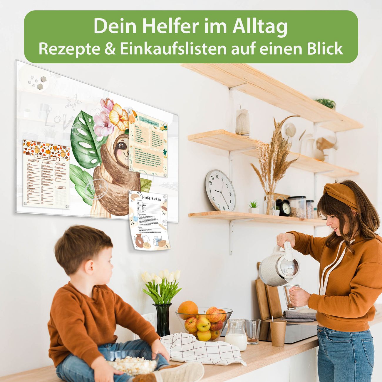 Ein Stück Design, das Ihren Alltag organisiert. Schreiben, heften, inspirieren - alles an einem Ort. Qualität, die man spürt. Montage leicht gemacht. Handwerk mit Herz - veredelt in Sachsen. Einzigartiges Design mit Motiv Motiv Fröhliches Faultier Beschreibbare Glasoberfläche, leicht zu reinigen Starke Magnetkraft durch Stahlrückwand Inklusive 4 Neodym-Magneten Flexible Montageoptionen Handveredelt in Sachsen - Qualität, die bleibt