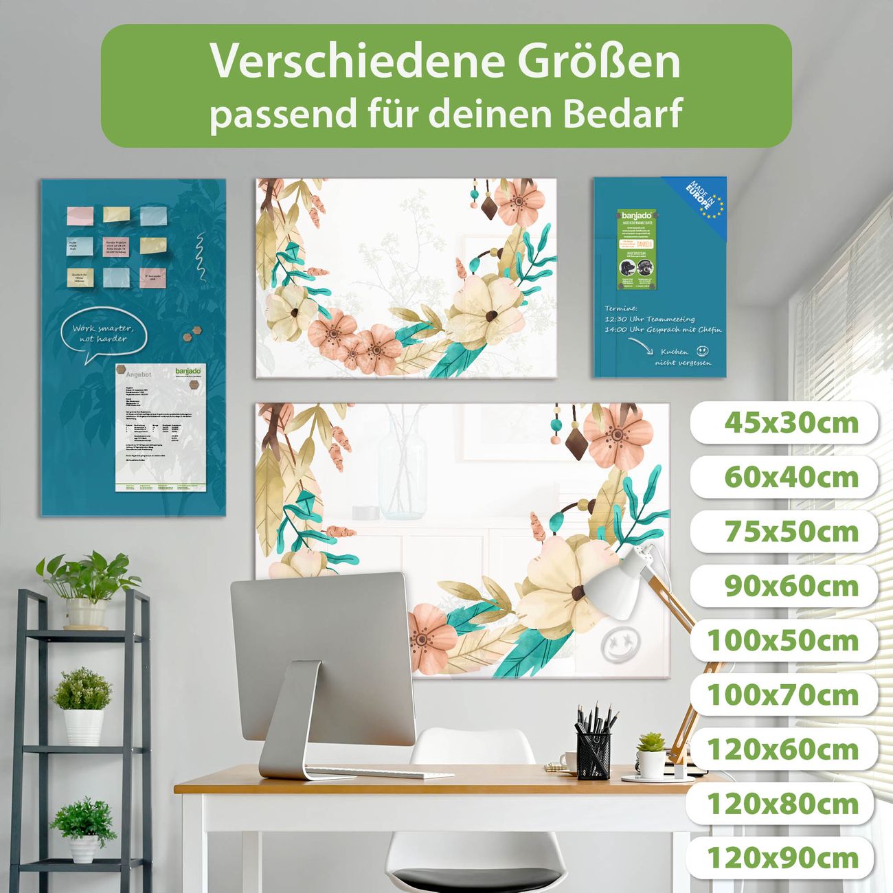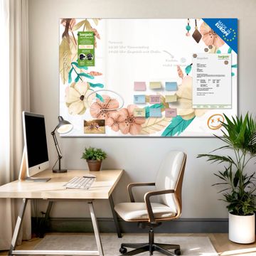 Die banjado Glas Magnettafel mit dem Motiv Motiv Frühlingsblütenkranz verbindet Funktionalität mit Stil. Sie ersetzt das Zettelchaos durch klare Strukturen und bringt dabei eine warme, natürliche Atmosphäre in Ihr Zuhause. Ob im Büro, in der Küche oder im Eingangsbereich - dieses Design-Board zieht Blicke an und sorgt für Ordnung mit Charakter.