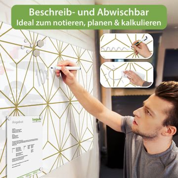 Die banjado Glas Magnettafel mit dem Motiv Motiv Geometrische Eleganz verbindet Funktionalität mit Stil. Sie ersetzt das Zettelchaos durch klare Strukturen und bringt dabei eine warme, natürliche Atmosphäre in Ihr Zuhause. Ob im Büro, in der Küche oder im Eingangsbereich - dieses Design-Board zieht Blicke an und sorgt für Ordnung mit Charakter.