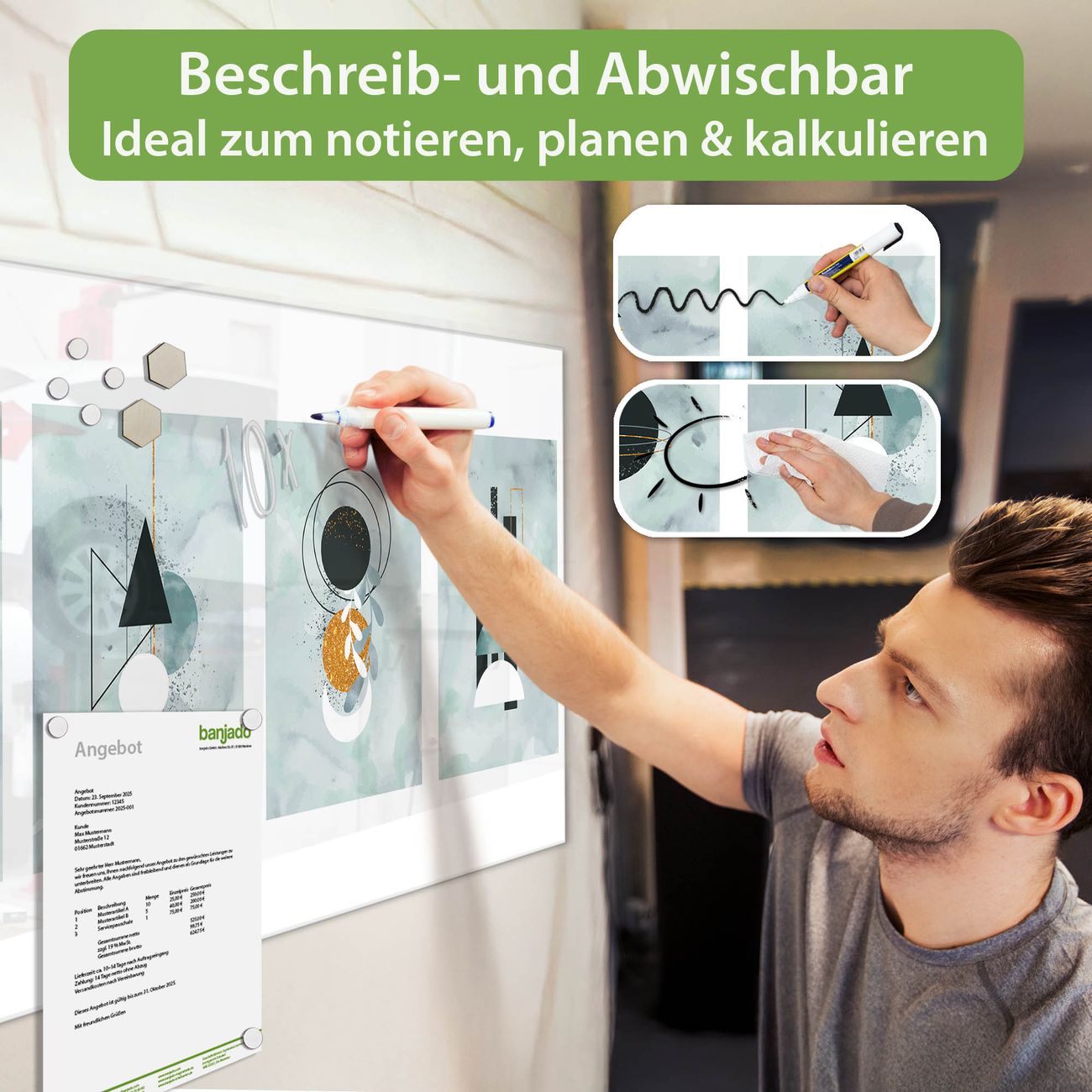 Jede Glas Magnettafel wird in unserer Werkstatt von Hand gefertigt und sorgfältig geprüft. So erhalten Sie ein echtes Qualitätsprodukt, das Funktion und Ästhetik perfekt vereint.?? Warum banjado?