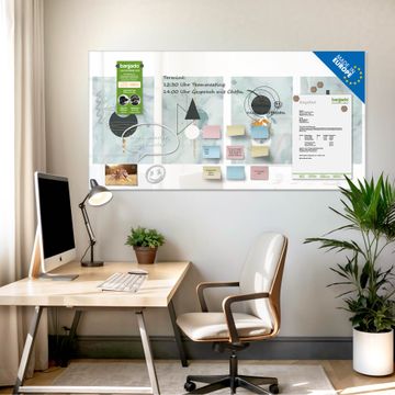 Auf der glatten Glasoberfläche lassen sich Termine, Rezepte oder Notizen ganz einfach mit Kreidestiften festhalten und rückstandslos entfernen. Starke Neodym-Magnete halten Ihre wichtigsten Erinnerungen sicher an Ort und Stelle. So entsteht Ihre ganz persönliche Ideenwand - jeden Tag neu.