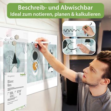 Die banjado Glas Magnettafel mit dem Motiv Motiv Geometrische Komposition verbindet Funktionalität mit Stil. Sie ersetzt das Zettelchaos durch klare Strukturen und bringt dabei eine warme, natürliche Atmosphäre in Ihr Zuhause. Ob im Büro, in der Küche oder im Eingangsbereich - dieses Design-Board zieht Blicke an und sorgt für Ordnung mit Charakter.