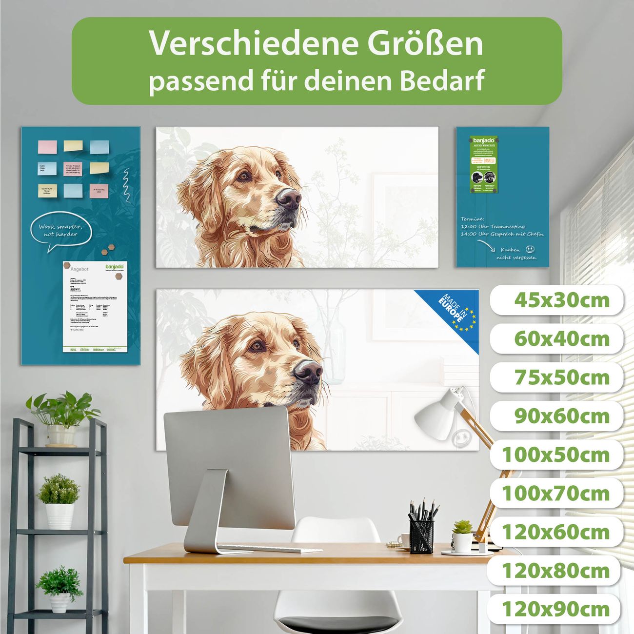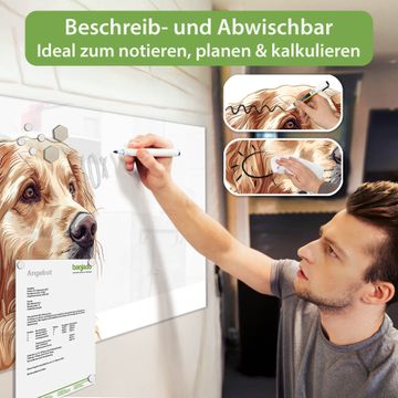 Die banjado Glas Magnettafel mit dem Motiv Motiv Goldener Freund verbindet Funktionalität mit Stil. Sie ersetzt das Zettelchaos durch klare Strukturen und bringt dabei eine warme, natürliche Atmosphäre in Ihr Zuhause. Ob im Büro, in der Küche oder im Eingangsbereich - dieses Design-Board zieht Blicke an und sorgt für Ordnung mit Charakter.