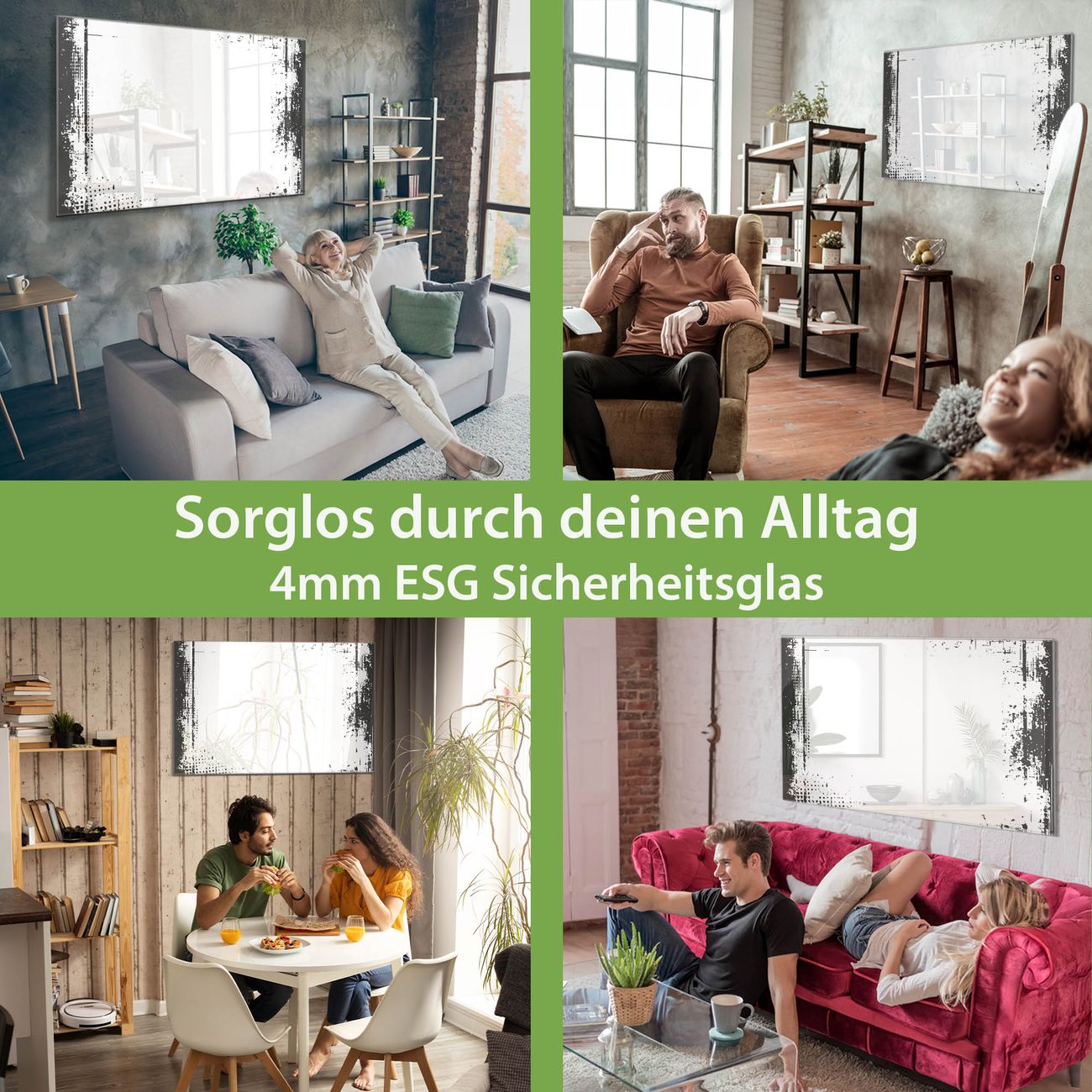 - Material: 4mm Sicherheitsglas mit Metallrückwand
