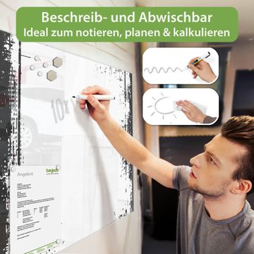 Die banjado Glas Magnettafel mit dem Motiv Motiv Grunge-Rahmen verbindet Funktionalität mit Stil. Sie ersetzt das Zettelchaos durch klare Strukturen und bringt dabei eine warme, natürliche Atmosphäre in Ihr Zuhause. Ob im Büro, in der Küche oder im Eingangsbereich - dieses Design-Board zieht Blicke an und sorgt für Ordnung mit Charakter.