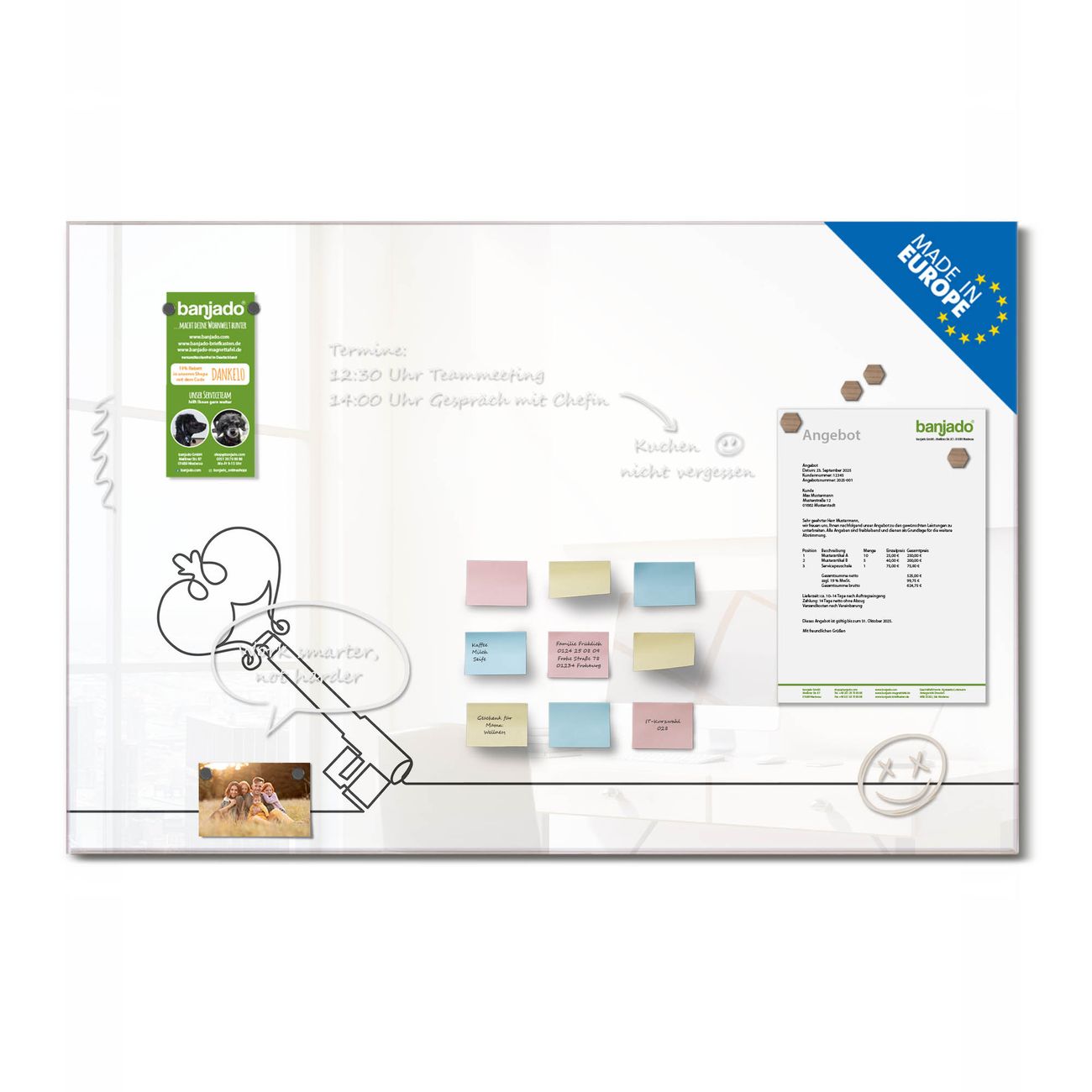 Bitte beachten Sie, dass ausschliessliche spezielle Magnete an der Glastafel haften. Wir empfehlen banjado Neodym Magnete, diese sind durch uns auf Wirksamkeit geprüft.