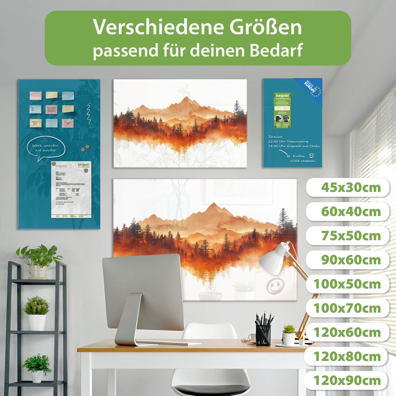Ein Stück Design, das Ihren Alltag organisiert. Schreiben, heften, inspirieren - alles an einem Ort. Qualität, die man spürt. Montage leicht gemacht. Handwerk mit Herz - veredelt in Sachsen. Einzigartiges Design mit Motiv Motiv Herbstliche Berglandschaft Beschreibbare Glasoberfläche, leicht zu reinigen Starke Magnetkraft durch Stahlrückwand Inklusive 4 Neodym-Magneten Flexible Montageoptionen Handveredelt in Sachsen - Qualität, die bleibt