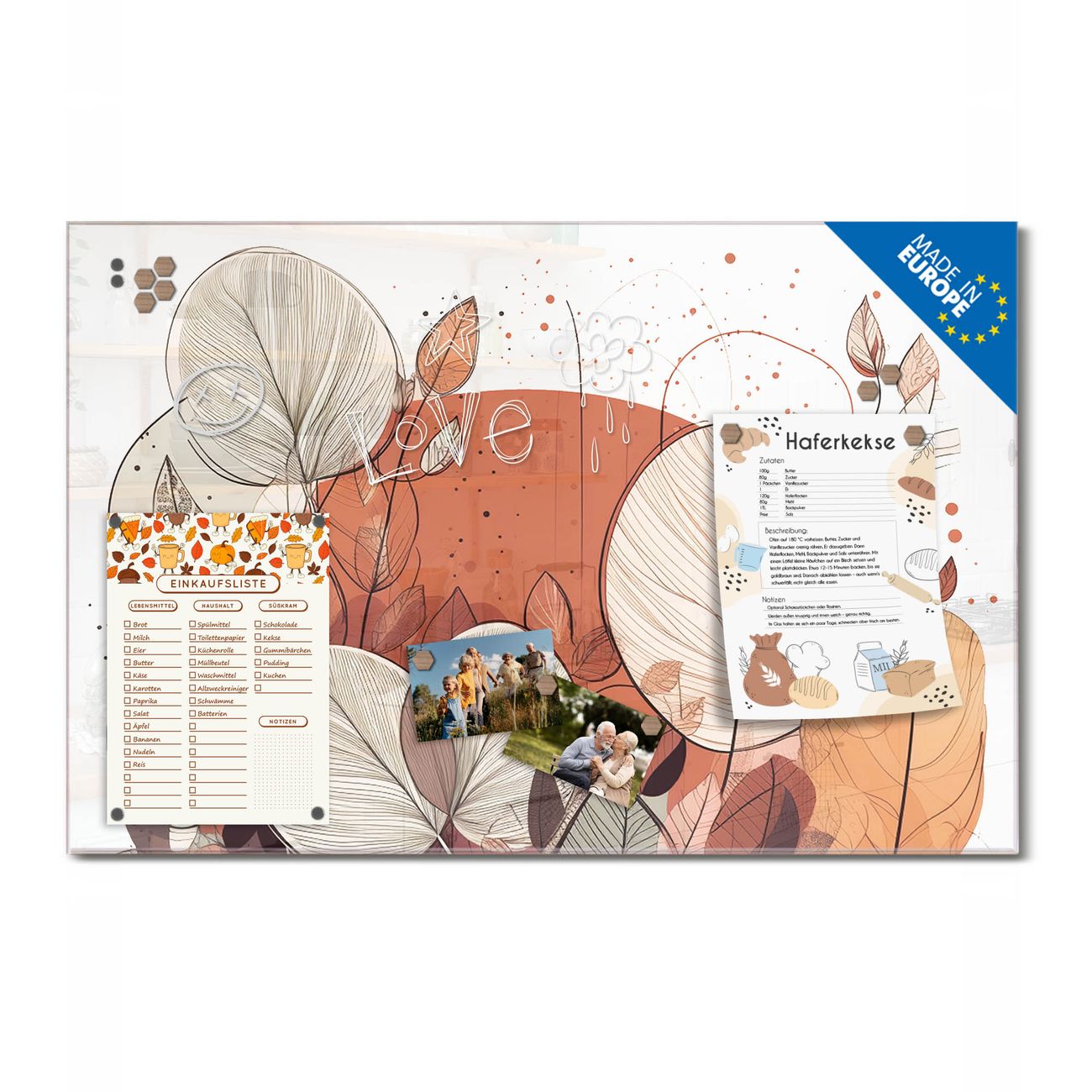 Ein Stück Design, das Ihren Alltag organisiert. Schreiben, heften, inspirieren - alles an einem Ort. Qualität, die man spürt. Montage leicht gemacht. Handwerk mit Herz - veredelt in Sachsen. Einzigartiges Design mit Motiv Motiv Herbstliche Blätterpracht Beschreibbare Glasoberfläche, leicht zu reinigen Starke Magnetkraft durch Stahlrückwand Inklusive 4 Neodym-Magneten Flexible Montageoptionen Handveredelt in Sachsen - Qualität, die bleibt