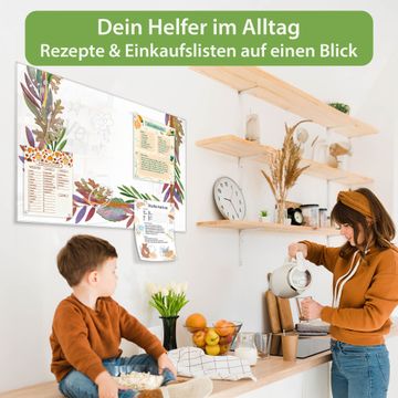 Auf der glatten Glasoberfläche lassen sich Termine, Rezepte oder Notizen ganz einfach mit Kreidestiften festhalten und rückstandslos entfernen. Starke Neodym-Magnete halten Ihre wichtigsten Erinnerungen sicher an Ort und Stelle. So entsteht Ihre ganz persönliche Ideenwand - jeden Tag neu.