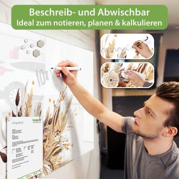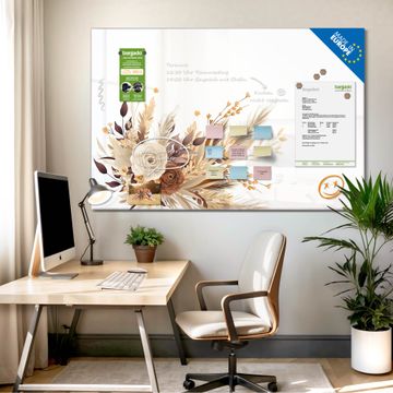 Die banjado Glas Magnettafel mit dem Motiv Motiv Herbstlicher Blumenstrauß verbindet Funktionalität mit Stil. Sie ersetzt das Zettelchaos durch klare Strukturen und bringt dabei eine warme, natürliche Atmosphäre in Ihr Zuhause. Ob im Büro, in der Küche oder im Eingangsbereich - dieses Design-Board zieht Blicke an und sorgt für Ordnung mit Charakter.