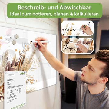 Die banjado Glas Magnettafel mit dem Motiv Motiv Herbstlicher Blumenstrauß verbindet Funktionalität mit Stil. Sie ersetzt das Zettelchaos durch klare Strukturen und bringt dabei eine warme, natürliche Atmosphäre in Ihr Zuhause. Ob im Büro, in der Küche oder im Eingangsbereich - dieses Design-Board zieht Blicke an und sorgt für Ordnung mit Charakter.