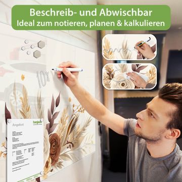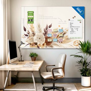 Die banjado Glas Magnettafel mit dem Motiv Motiv Herbstliches Blumenarrangement verbindet Funktionalität mit Stil. Sie ersetzt das Zettelchaos durch klare Strukturen und bringt dabei eine warme, natürliche Atmosphäre in Ihr Zuhause. Ob im Büro, in der Küche oder im Eingangsbereich - dieses Design-Board zieht Blicke an und sorgt für Ordnung mit Charakter.