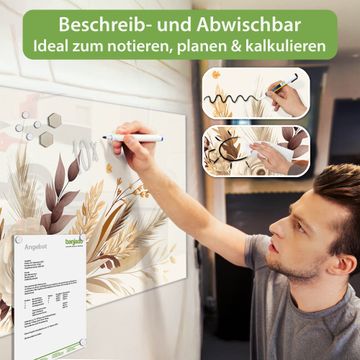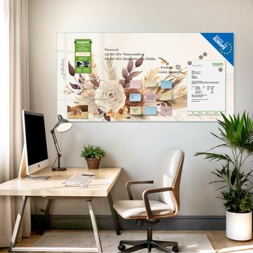 Die banjado Glas Magnettafel mit dem Motiv Motiv Herbstliches Blumenarrangement verbindet Funktionalität mit Stil. Sie ersetzt das Zettelchaos durch klare Strukturen und bringt dabei eine warme, natürliche Atmosphäre in Ihr Zuhause. Ob im Büro, in der Küche oder im Eingangsbereich - dieses Design-Board zieht Blicke an und sorgt für Ordnung mit Charakter.
