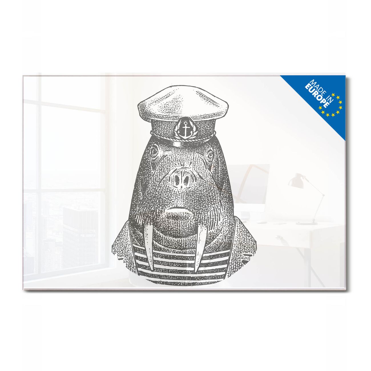 Glas Magnettafel im Querformat Motiv Herr Walross 2