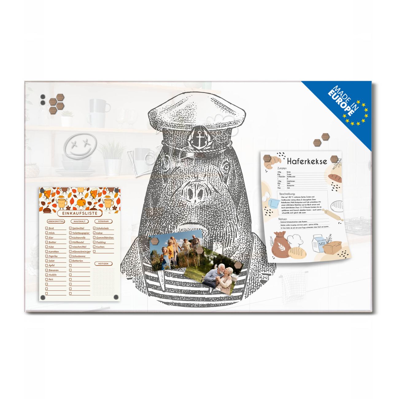 Ein Stück Design, das Ihren Alltag organisiert. Schreiben, heften, inspirieren - alles an einem Ort. Qualität, die man spürt. Montage leicht gemacht. Handwerk mit Herz - veredelt in Sachsen. Einzigartiges Design mit Motiv Motiv Herr Walross 2 Beschreibbare Glasoberfläche, leicht zu reinigen Starke Magnetkraft durch Stahlrückwand Inklusive 4 Neodym-Magneten Flexible Montageoptionen Handveredelt in Sachsen - Qualität, die bleibt