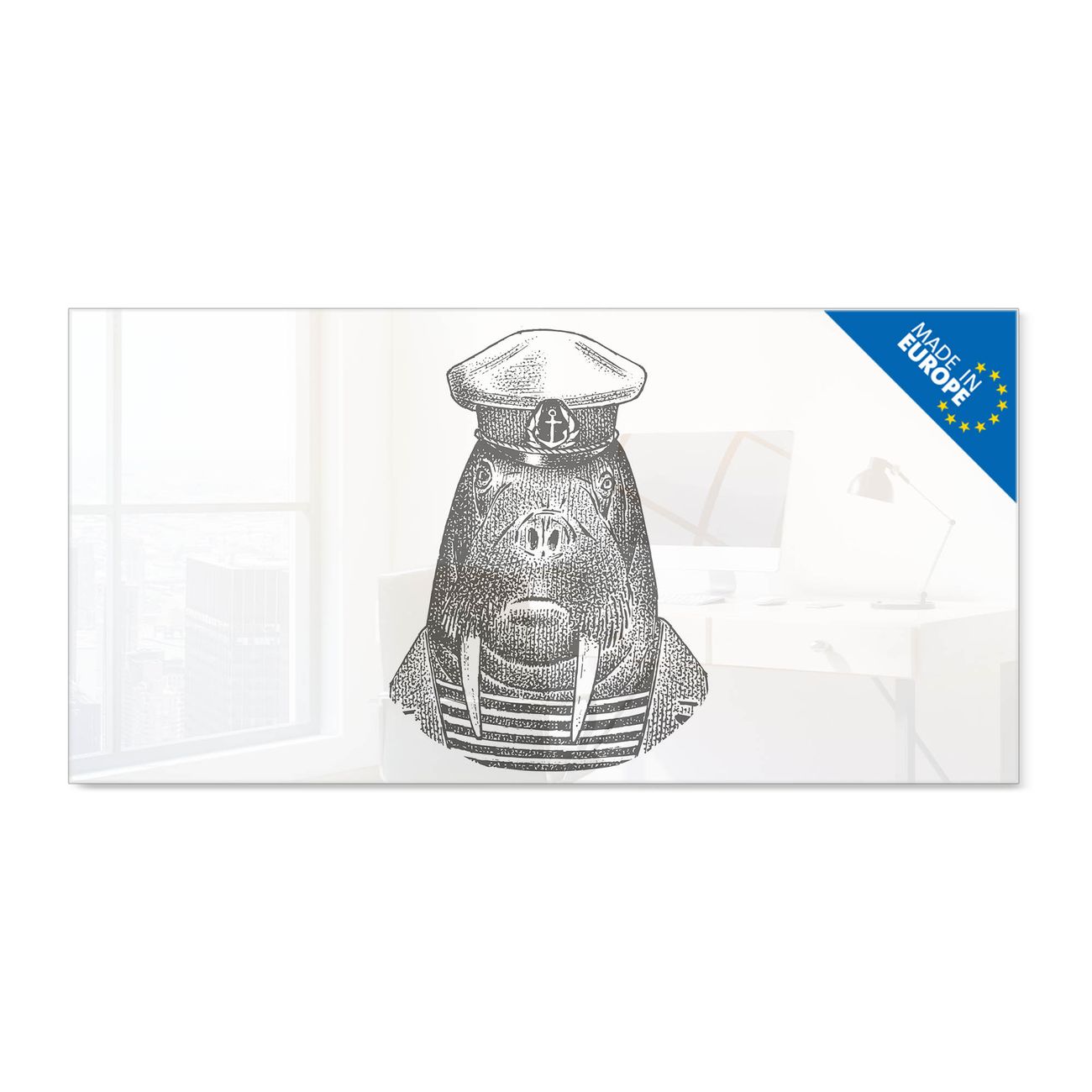 Glas Magnettafel im Querformat Motiv Herr Walross 2