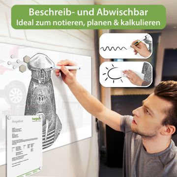 Auf der glatten Glasoberfläche lassen sich Termine, Rezepte oder Notizen ganz einfach mit Kreidestiften festhalten und rückstandslos entfernen. Starke Neodym-Magnete halten Ihre wichtigsten Erinnerungen sicher an Ort und Stelle. So entsteht Ihre ganz persönliche Ideenwand - jeden Tag neu.