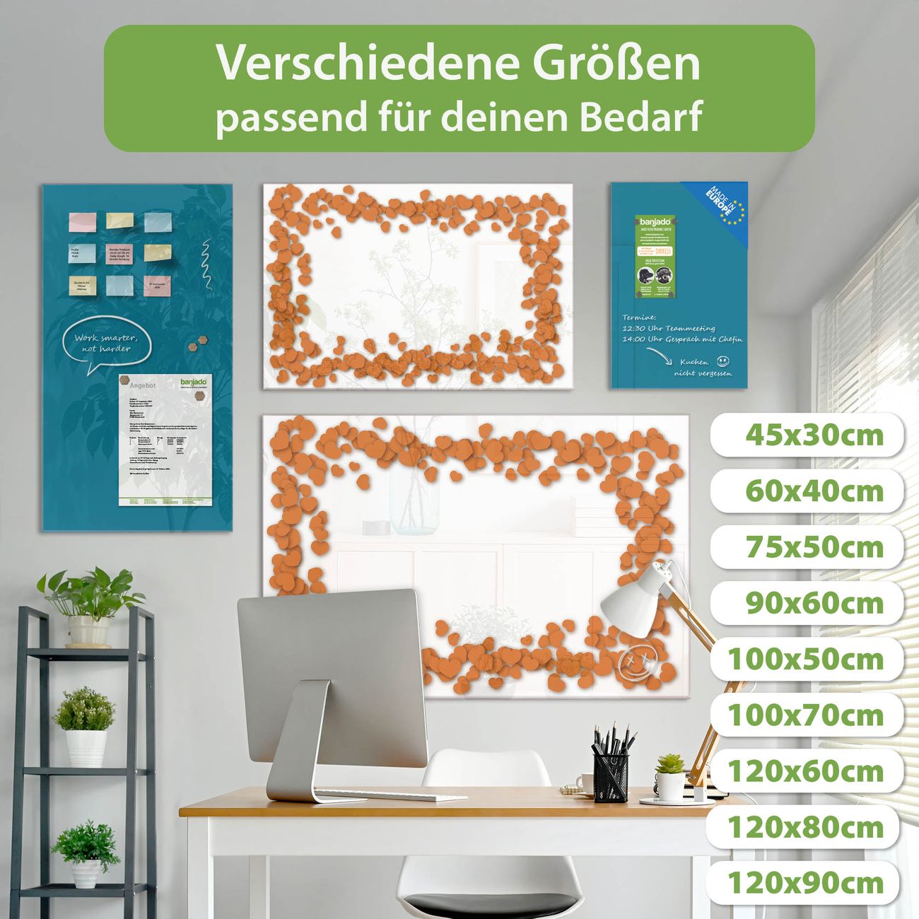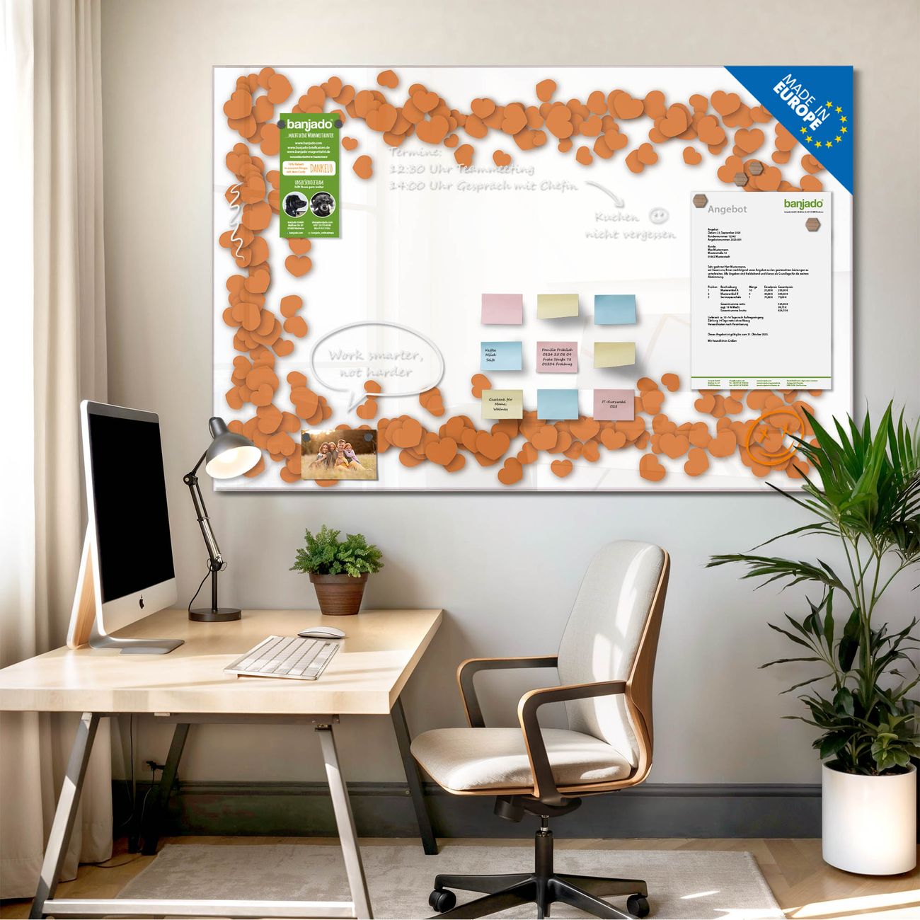 Jede Glas Magnettafel wird in unserer Werkstatt von Hand gefertigt und sorgfältig geprüft. So erhalten Sie ein echtes Qualitätsprodukt, das Funktion und Ästhetik perfekt vereint.?? Warum banjado?