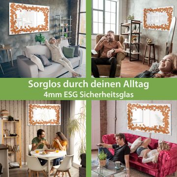 Glas Magnettafel im Querformat Motiv Herzrahmen in Orange