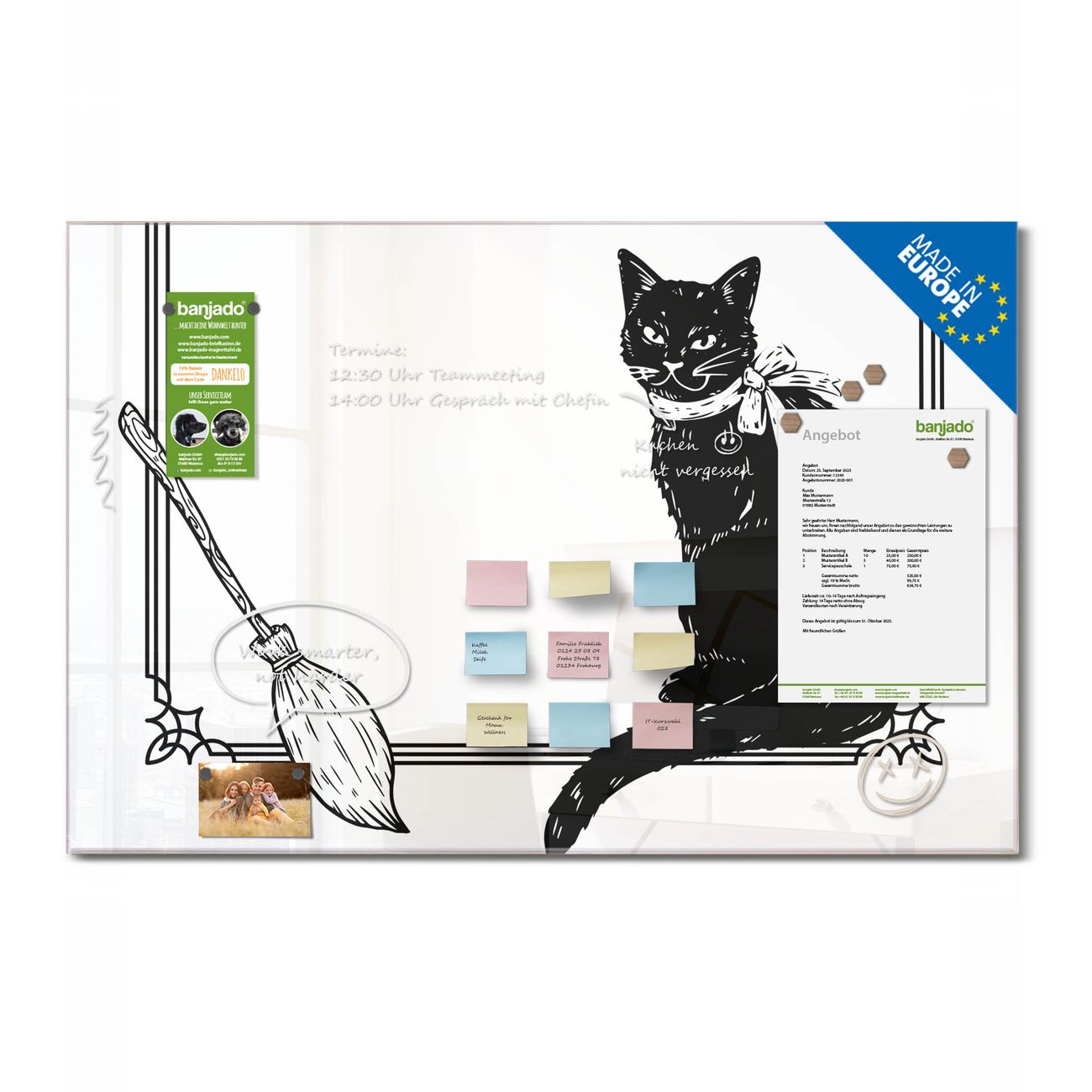 Glas Magnettafel im Querformat Motiv Hexen und Kater