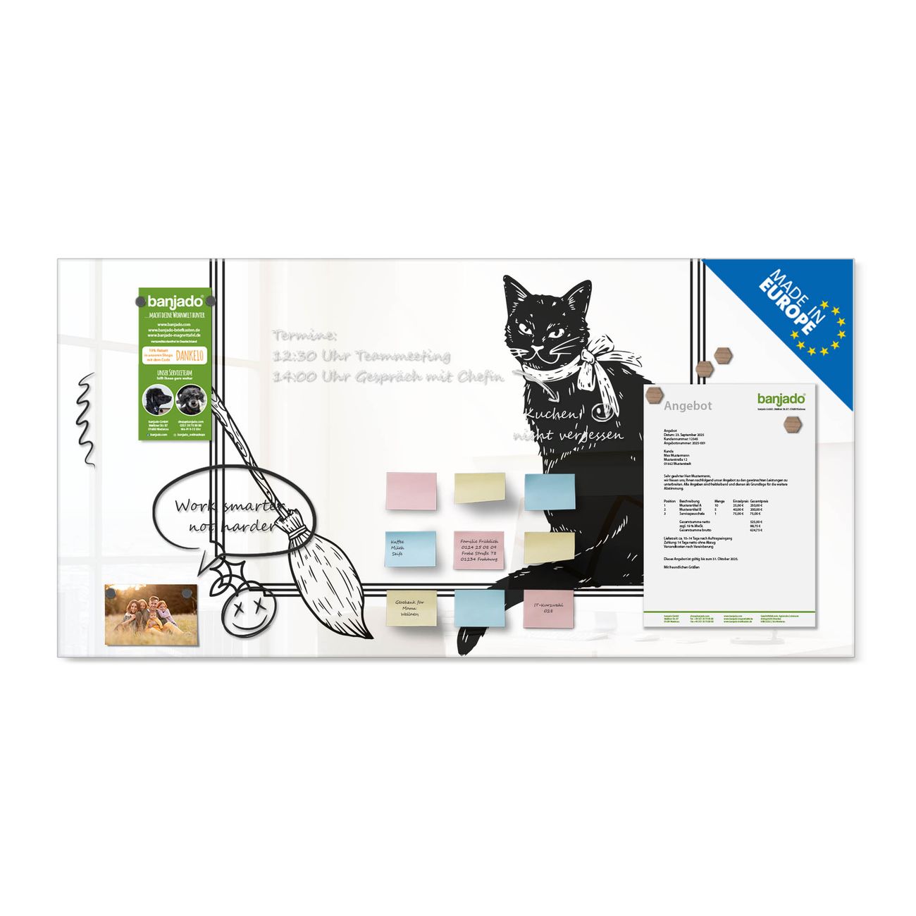 Glas Magnettafel im Querformat Motiv Hexen und Kater