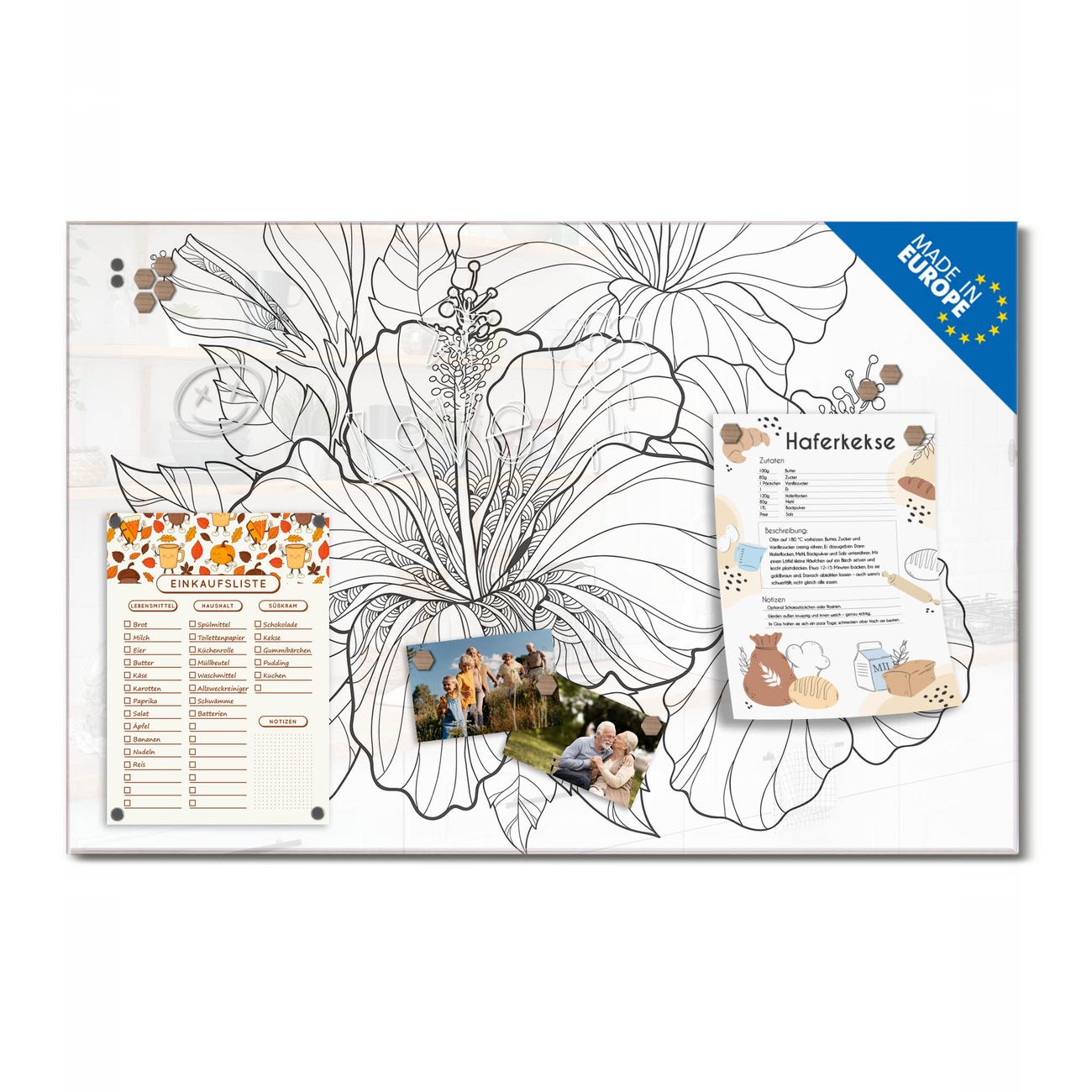 Ein Stück Design, das Ihren Alltag organisiert. Schreiben, heften, inspirieren - alles an einem Ort. Qualität, die man spürt. Montage leicht gemacht. Handwerk mit Herz - veredelt in Sachsen. Einzigartiges Design mit Motiv Motiv Hibiskus 2 Beschreibbare Glasoberfläche, leicht zu reinigen Starke Magnetkraft durch Stahlrückwand Inklusive 4 Neodym-Magneten Flexible Montageoptionen Handveredelt in Sachsen - Qualität, die bleibt