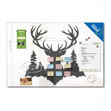 Glas Magnettafel im Querformat Motiv Hirsch im Wald Silhouette