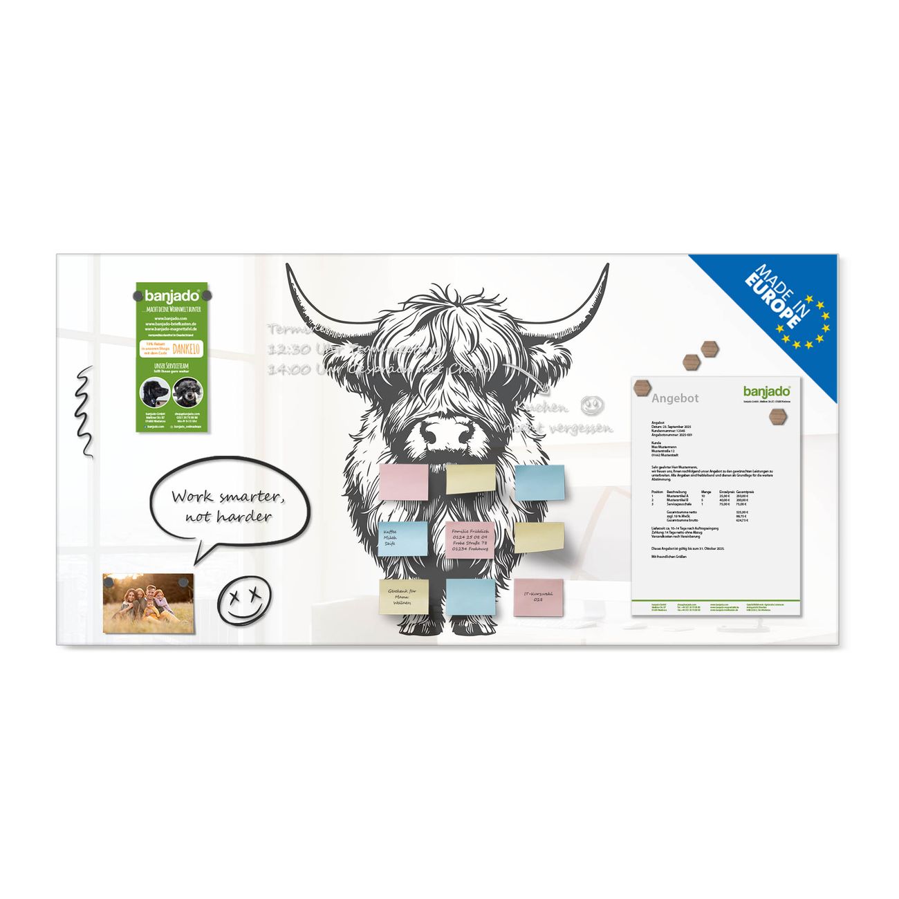 Glas Magnettafel im Querformat Motiv Hochlandrind