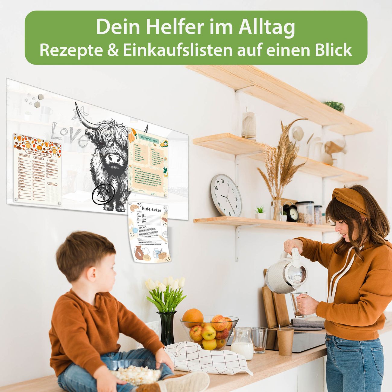 Ein Stück Design, das Ihren Alltag organisiert. Schreiben, heften, inspirieren - alles an einem Ort. Qualität, die man spürt. Montage leicht gemacht. Handwerk mit Herz - veredelt in Sachsen. Einzigartiges Design mit Motiv Motiv Hochlandrind Beschreibbare Glasoberfläche, leicht zu reinigen Starke Magnetkraft durch Stahlrückwand Inklusive 4 Neodym-Magneten Flexible Montageoptionen Handveredelt in Sachsen - Qualität, die bleibt