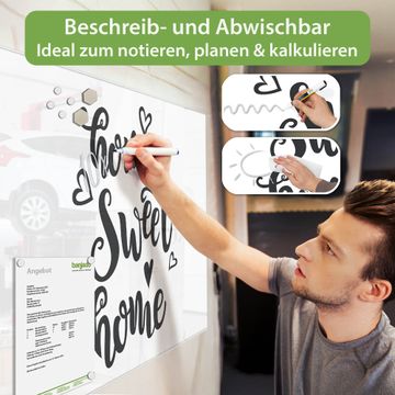 Auf der glatten Glasoberfläche lassen sich Termine, Rezepte oder Notizen ganz einfach mit Kreidestiften festhalten und rückstandslos entfernen. Starke Neodym-Magnete halten Ihre wichtigsten Erinnerungen sicher an Ort und Stelle. So entsteht Ihre ganz persönliche Ideenwand - jeden Tag neu.
