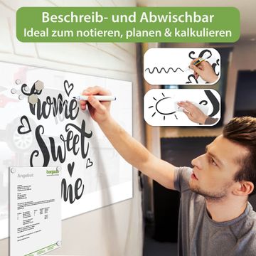 Die banjado Glas Magnettafel mit dem Motiv Motiv Home sweet Home 3 verbindet Funktionalität mit Stil. Sie ersetzt das Zettelchaos durch klare Strukturen und bringt dabei eine warme, natürliche Atmosphäre in Ihr Zuhause. Ob im Büro, in der Küche oder im Eingangsbereich - dieses Design-Board zieht Blicke an und sorgt für Ordnung mit Charakter.