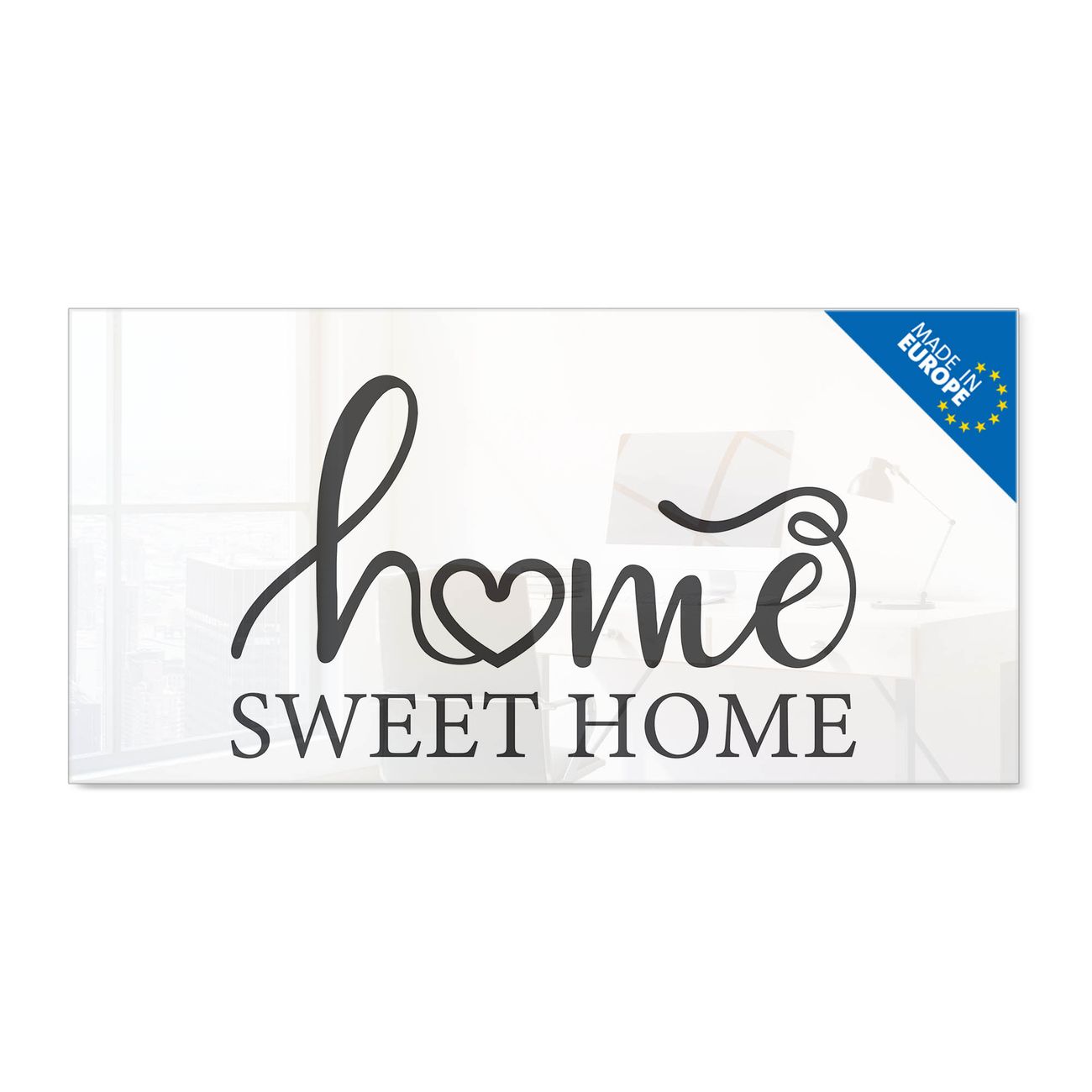 Glas Magnettafel im Querformat Motiv Home Sweet Home Schriftzug