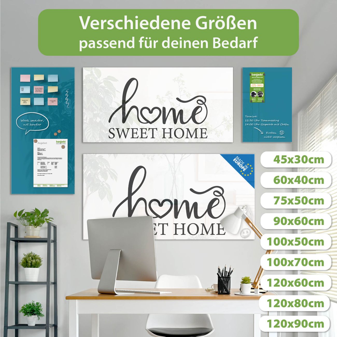 Ein Stück Design, das Ihren Alltag organisiert. Schreiben, heften, inspirieren - alles an einem Ort. Qualität, die man spürt. Montage leicht gemacht. Handwerk mit Herz - veredelt in Sachsen. Einzigartiges Design mit Motiv Motiv Home Sweet Home Schriftzug Beschreibbare Glasoberfläche, leicht zu reinigen Starke Magnetkraft durch Stahlrückwand Inklusive 4 Neodym-Magneten Flexible Montageoptionen Handveredelt in Sachsen - Qualität, die bleibt