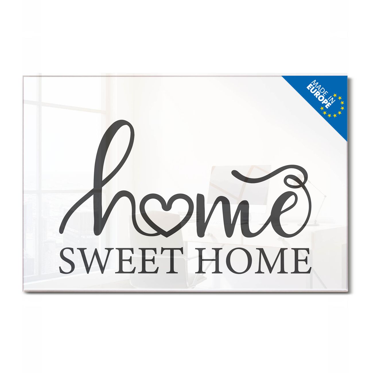 Glas Magnettafel im Querformat Motiv Home Sweet Home Schriftzug