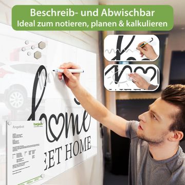 Die banjado Glas Magnettafel mit dem Motiv Motiv Home Sweet Home Schriftzug verbindet Funktionalität mit Stil. Sie ersetzt das Zettelchaos durch klare Strukturen und bringt dabei eine warme, natürliche Atmosphäre in Ihr Zuhause. Ob im Büro, in der Küche oder im Eingangsbereich - dieses Design-Board zieht Blicke an und sorgt für Ordnung mit Charakter.