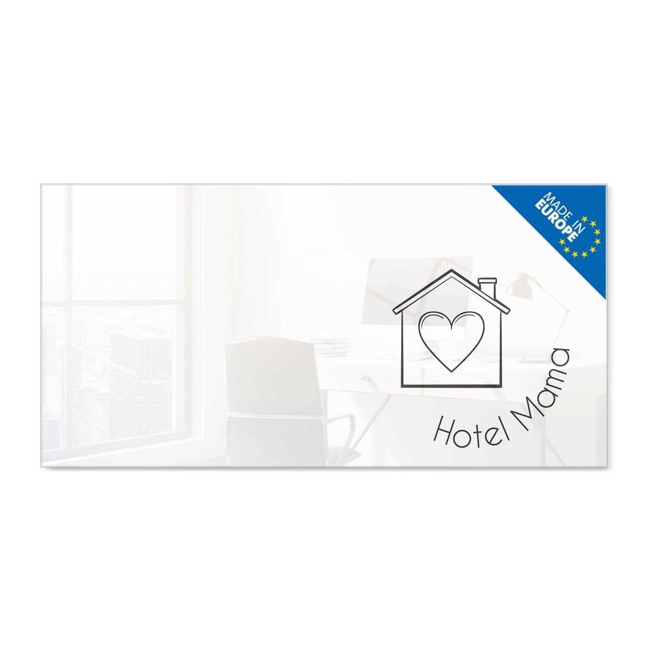 Glas Magnettafel im Querformat Motiv Hotel Mama Haus mit Herz 2